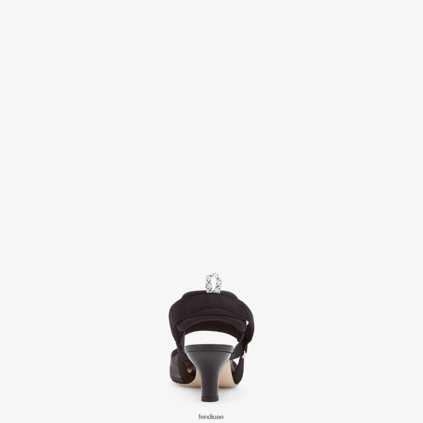 حذاء جلدي وشبكي بكعب متوسط أسود Fendi نحيف أحذية TNL80L1405
