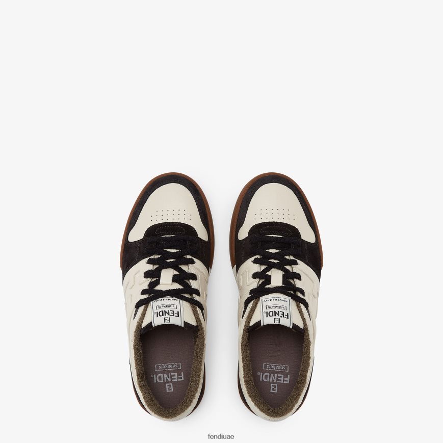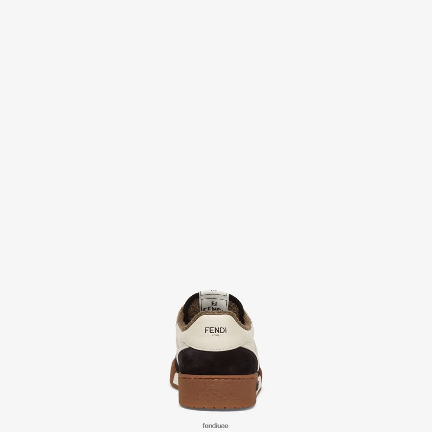 حذاء فندي الرياضي ذو التصميم المضغوط مع ملصق عتيق على اللسان. يحمل العلامة التجارية بنمط ff مخيط على الجانب وحروف فندي منقوشة على النعل. مصنوع من جلد الغزال الأسود مع تفاصيل من الجلد الأبيض. مزين بياقة تيري وأربطة سوداء. نعل مطاطي مغطى بمصد بني. يتضمن الطراز زوجًا ثانيًا من أربطة تيري البيضاء.