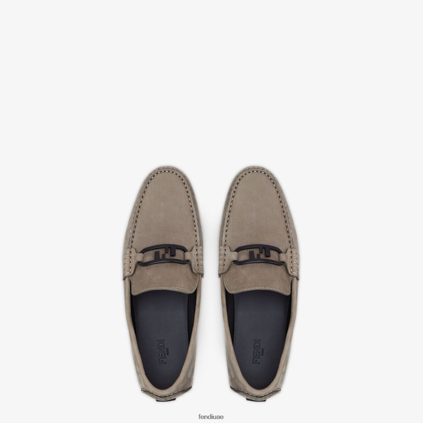 المتسكعون القيادة. باطن حصاة مرنة. مصنوع من جلد نوبوك باللون البيج مع حزام سرج من جلد النوبوك بلون فندي مع شريط مزخرف على شكل حرف ff. مزين بإبزيم فندي أولوك من المعدن المطلي باللون الأسود.