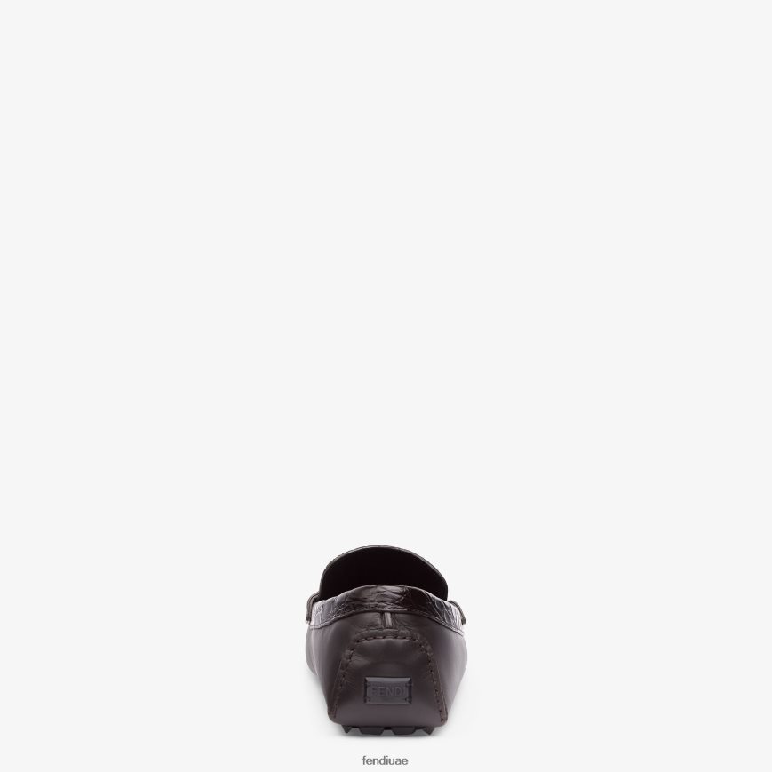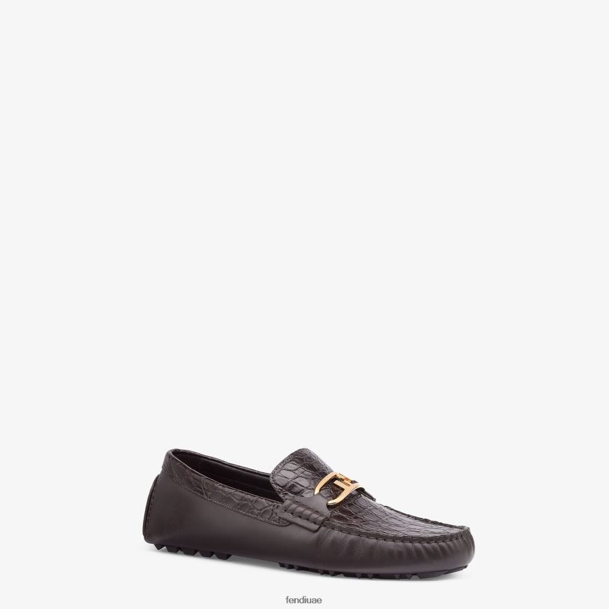 المتسكعون القيادة. باطن حصاة مرنة. مصنوع من جلد كايمان بني مع تفاصيل جلدية ناعمة. مزين بإبزيم معدني من فندي أولوك مع لمسة نهائية ذهبية اللون.