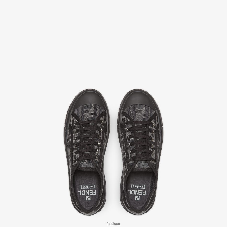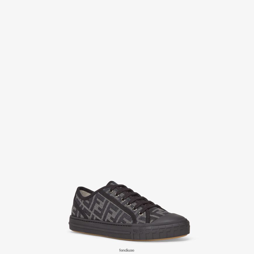 حذاء رياضي فندي دومينو مدمج وخفيف الوزن. مصنوع من القماش بزخارف جاكار ff باللونين الأسود والرمادي. نعل مطاطي مزين بنقش ff على مقدمة القدم.