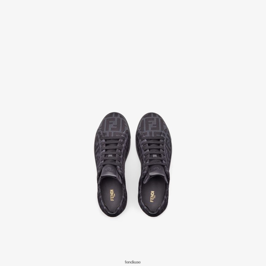 أحذية رياضية برباط. نعل مطاطي. مصنوع من شبكة بزخارف ff بظلال من اللون الرمادي والأسود.