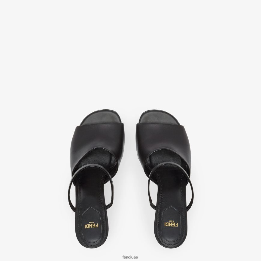 الصنادل الجلدية ذات الكعب العالي أسود Fendi نحيف أحذية TNL80L1278