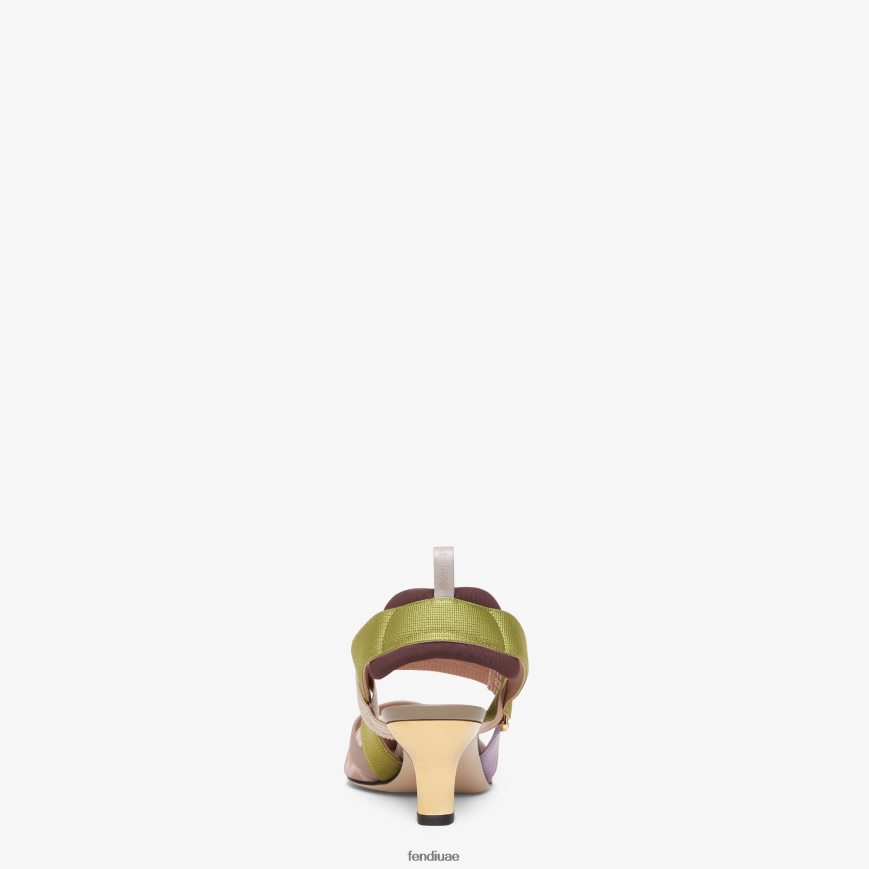 حذاء كوليبري بمقدمة مدببة وأشرطة مرنة تلتف حول القدم. النعل مزين بإدخالات مطاطية. مصنوعة من شبكة دقيقة باللون الوردي مع شعار ff. مزين بتفاصيل باللون الأصفر والأرجواني والأخضر الحمضي. تضيف الوسادة المبطنة وشريط حذاء المشي لمسافات طويلة لمسة رياضية. كعب مطلي بالذهب.