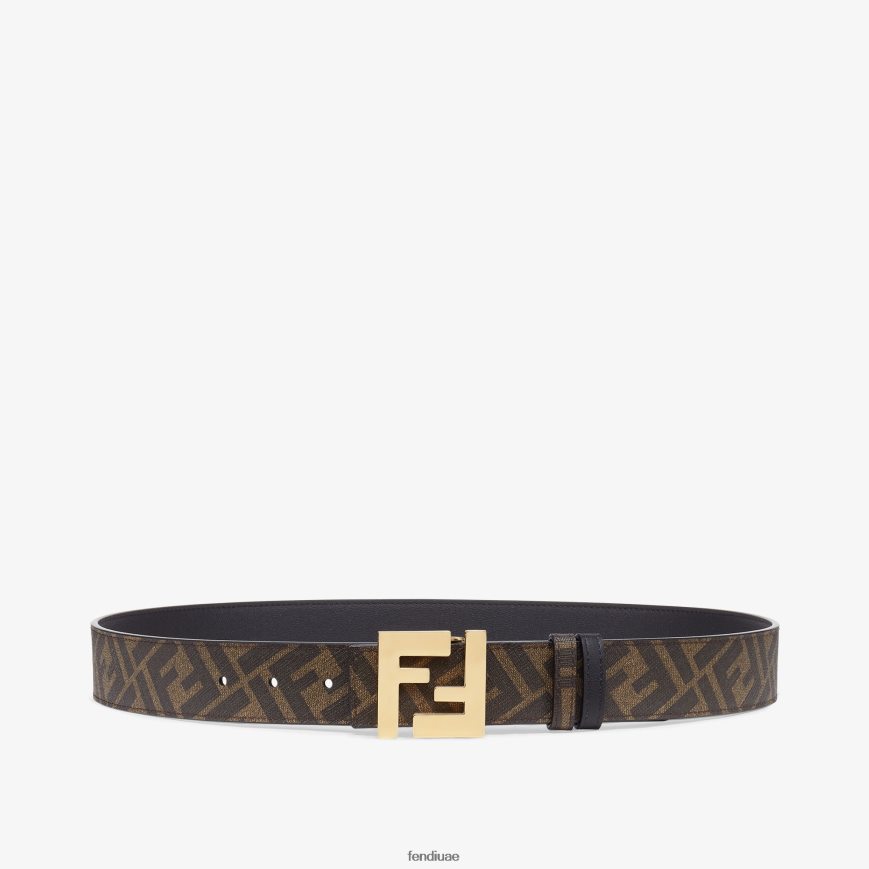حزام جلدي مربع ذو وجهين أسود Fendi رجال مُكَمِّلات TNL80L2334