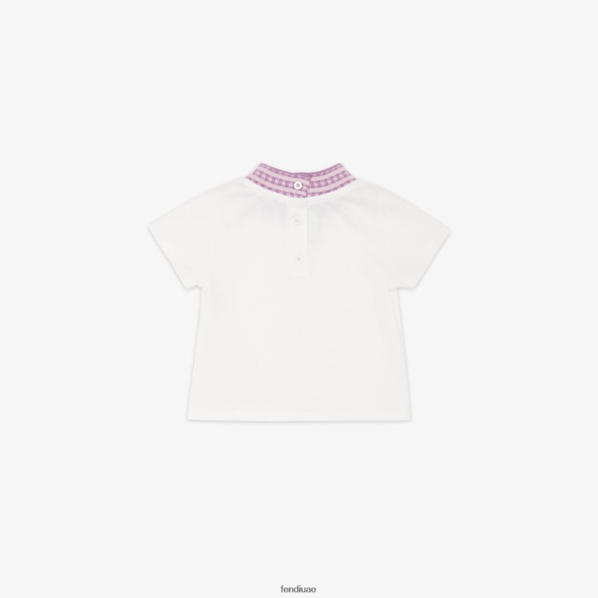 تي شيرت جيرسي مع شعار أرجواني أبيض Fendi أطفال ثياب TNL80L2777