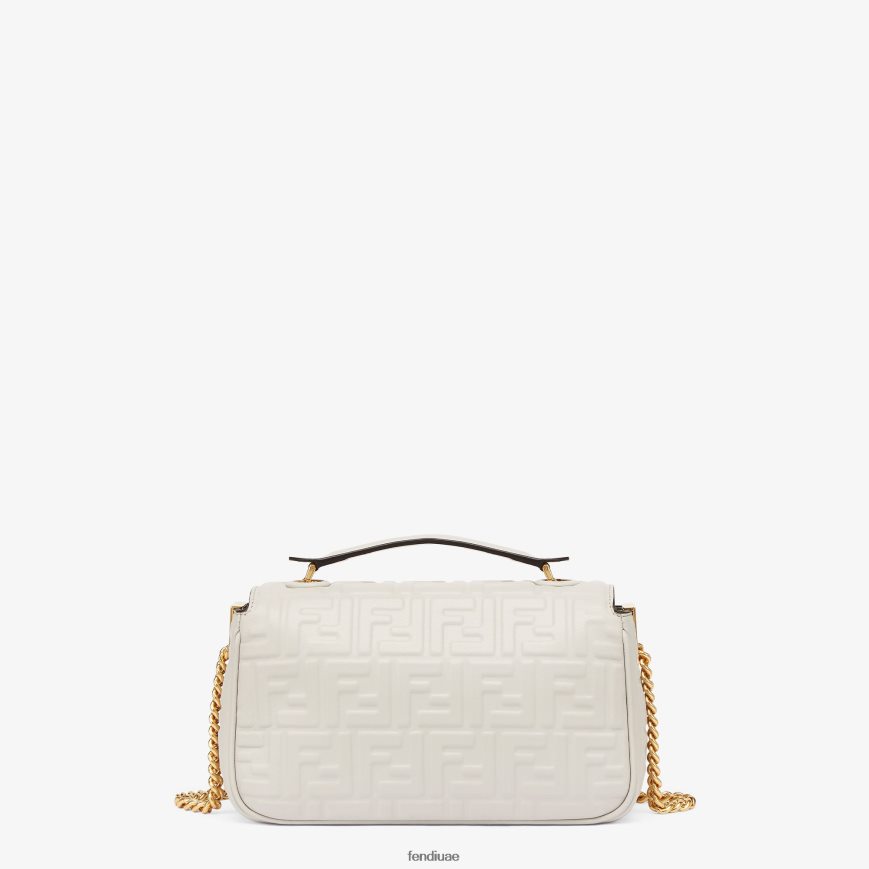 حقيبة باغيت متوسطة الحجم مع سلسلة، مصنوعة من جلد نابا الناعم باللون الرمادي الفاتح مع زخرفة ثلاثية الأبعاد. مزين بقفل ff.