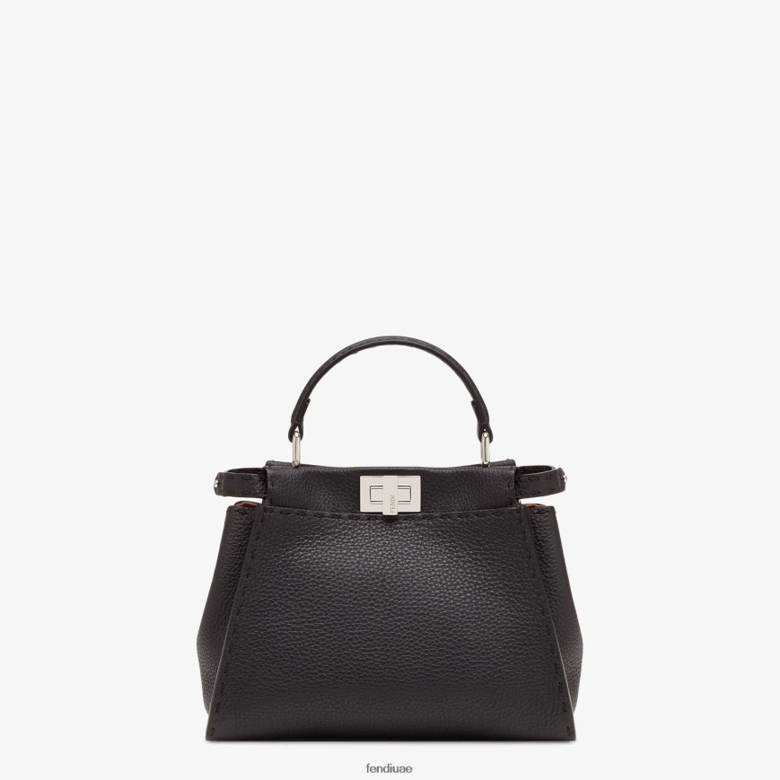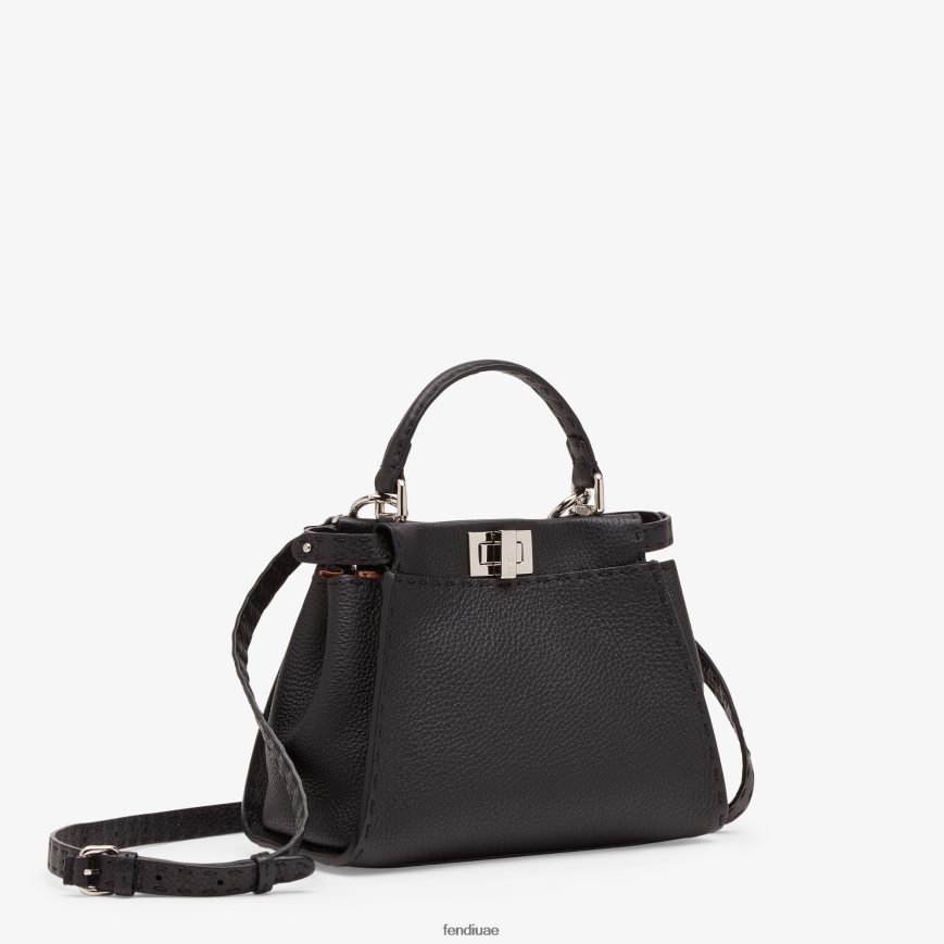 حقيبة بيكابو صغيرة أيقونية مصنوعة من جلد كويو رومانو باللون الأسود، مع خياطة يدوية ومزينة بقفل كلاسيكي ملتوي على كلا الجانبين.