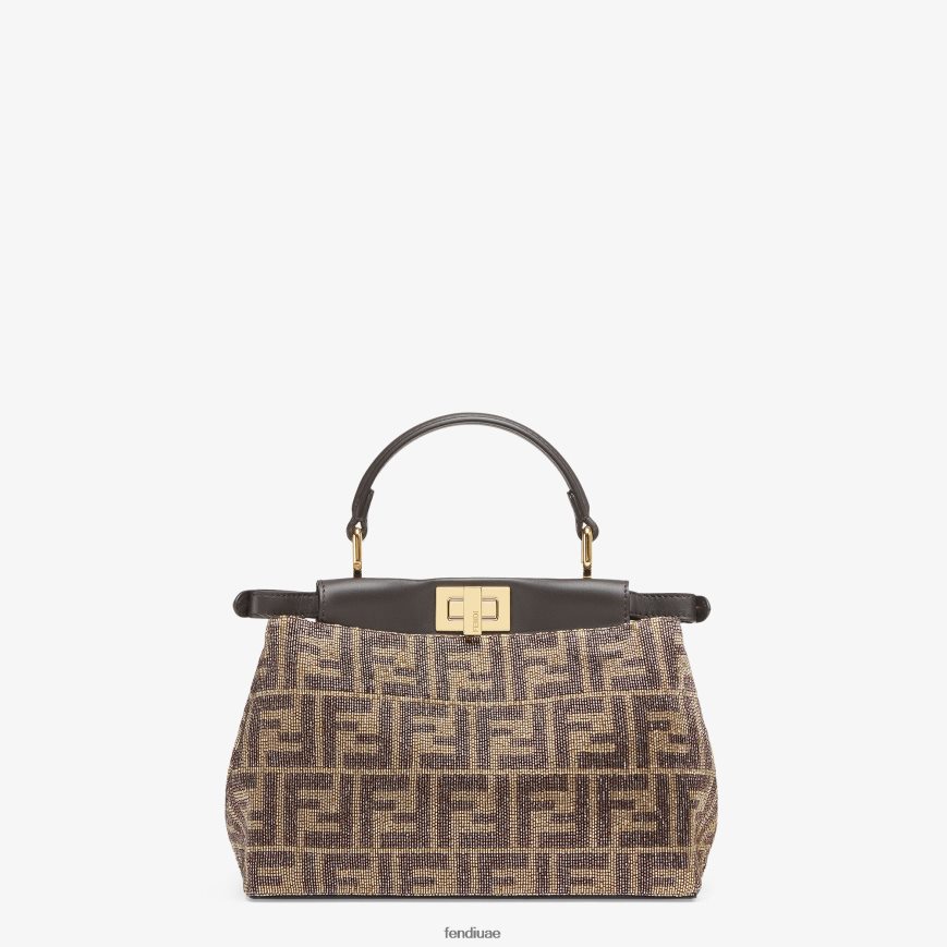 حقيبة بيكابو صغيرة أيقونية مطرزة بالكامل بخرز بوق ثنائي اللون مما يخلق شعار ff. مزينة بقفل ملتوي مميز على كلا الجانبين.