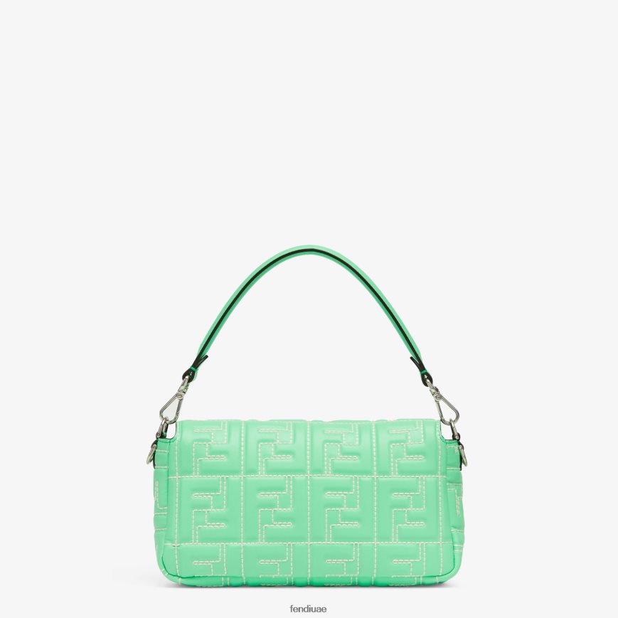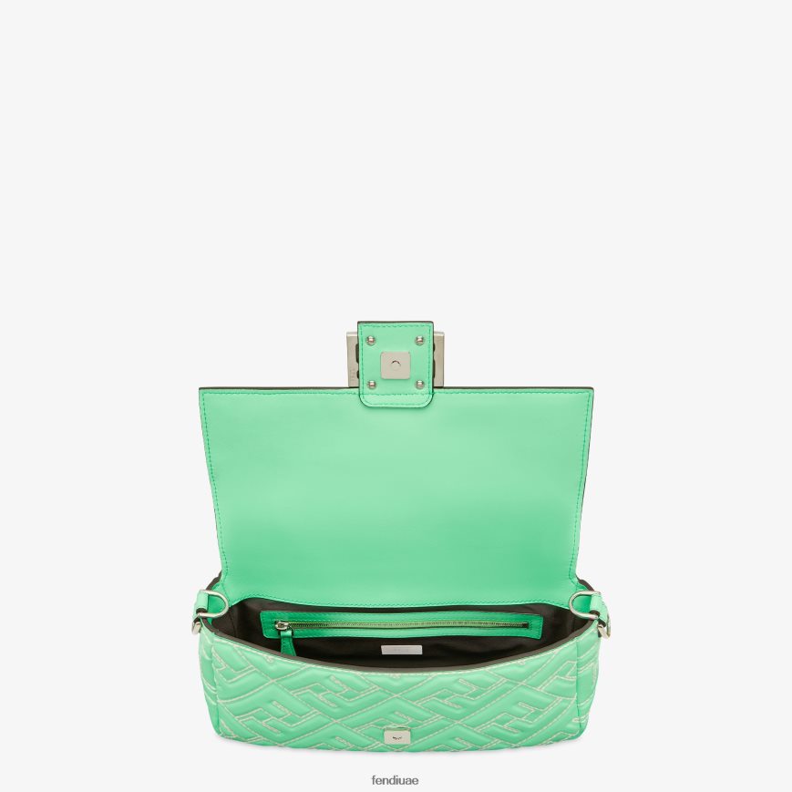 حقيبة باغيت متوسطة الحجم مصنوعة من جلد نابا المرن باللون الأخضر مع شعار ff، ومزينة بنقش ff مع خياطة بيضاء متباينة. مزين بمشبك ff.