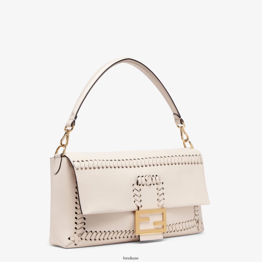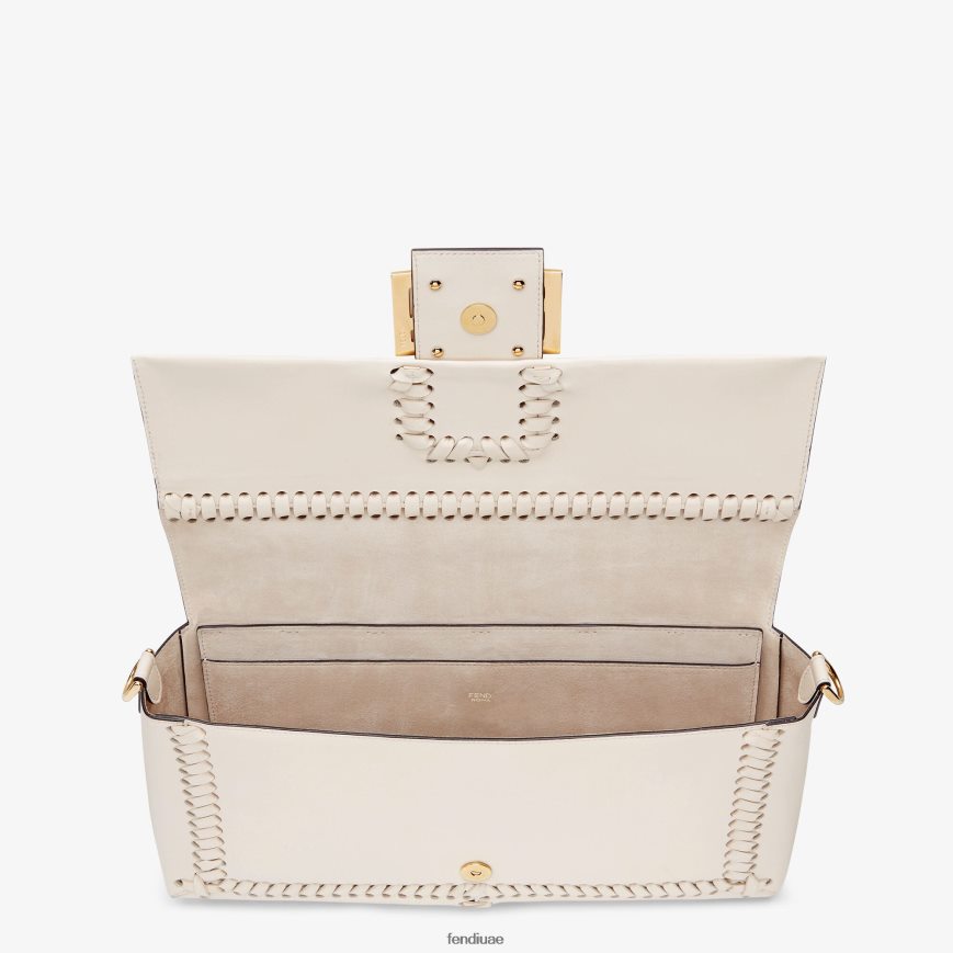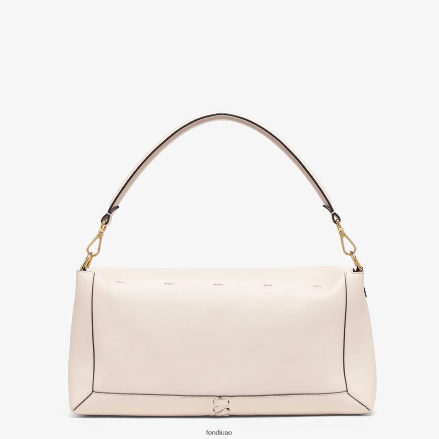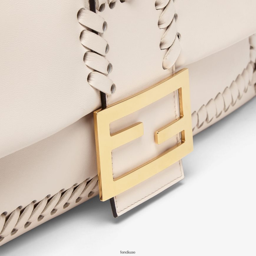 حقيبة باغيت كبيرة أيقونية مصنوعة من جلد نابا الناعم بلون الكاميليا، ومزينة بخياطة يدوية متناغمة مستوحاة من أسلوب أرشيفي. مزين بإبزيم على شكل حرف ff.