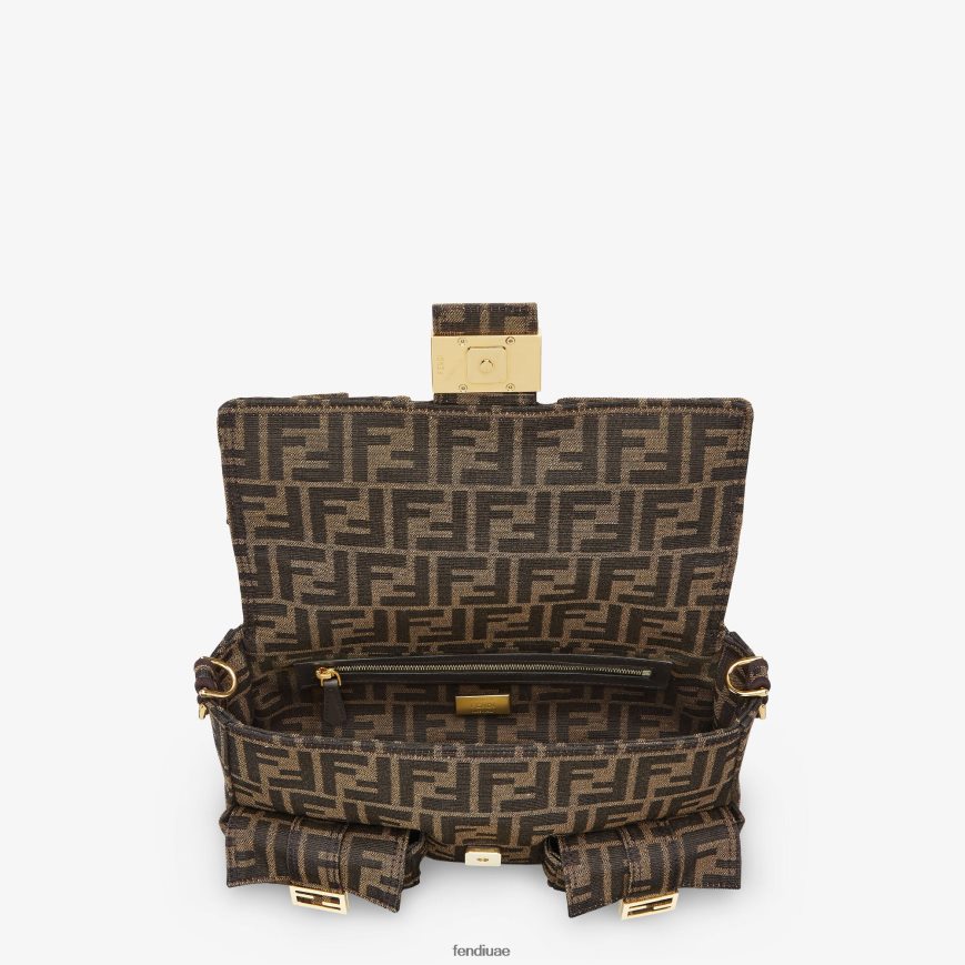 حقيبة باغيت متعددة الجيوب مصنوعة من قماش جاكار ff، مع خمسة جيوب بأحجام مختلفة. الجيوب والغطاء الأمامي مزينان بإبزيم ff الأيقوني.