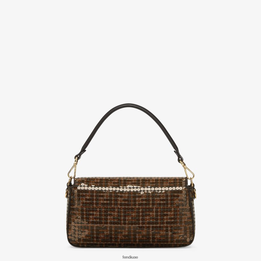 حقيبة باغيت متوسطة الحجم أيقونية مصنوعة من قماش جاكار ff ومطرزة بالكامل بالترتر الشفاف اللامع. مزين بمشبك ff.