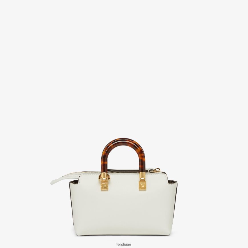 حقيبة باي ذا واي بوسطن الشهيرة مصنوعة من الجلد الأبيض مع حروف فندي روما مختومة بالحرارة ومقابض زجاجية صلبة بتأثير صدفة السلحفاة. إغلاق بسحاب.