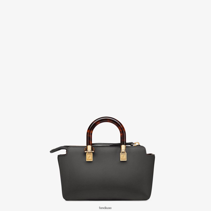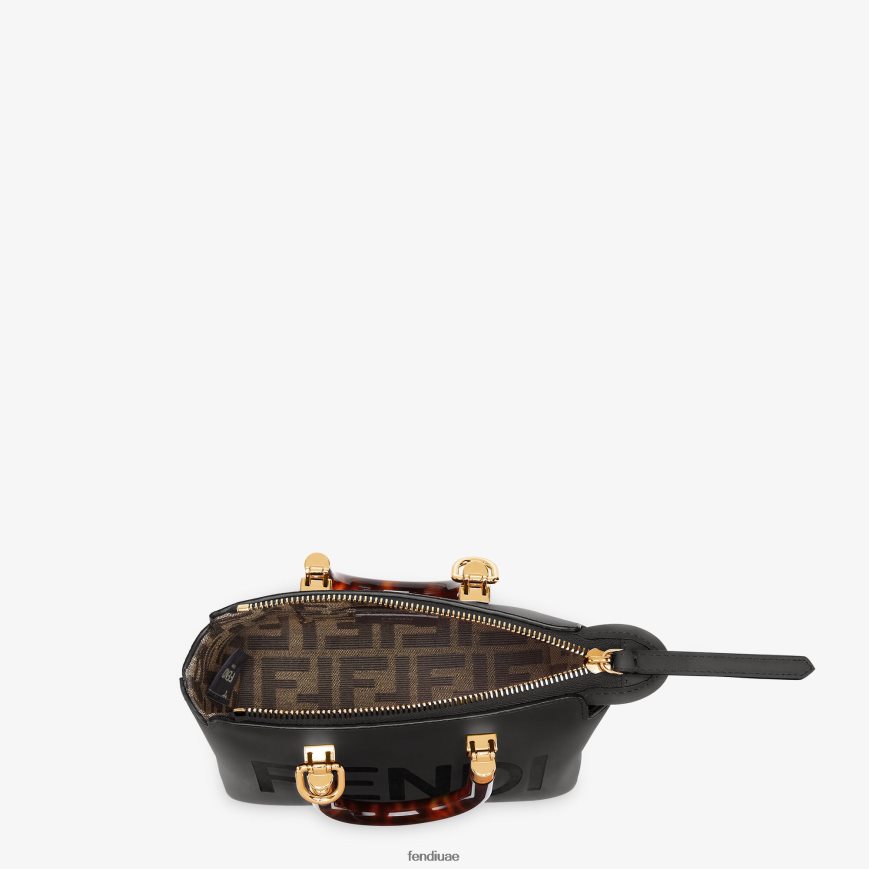 حقيبة باي ذا واي بوسطن الشهيرة مصنوعة من الجلد الأسود مع حروف فندي روما المختومة ومقابض زجاجية صلبة بتأثير صدفة السلحفاة. إغلاق بسحاب.