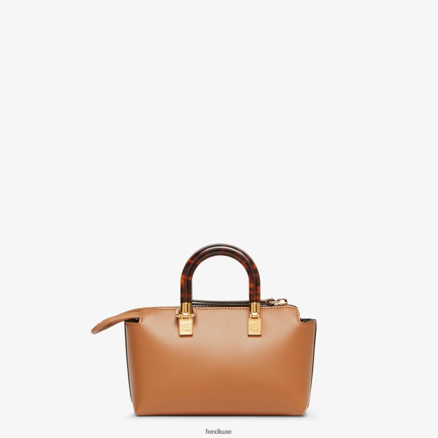 حقيبة باي ذا واي بوسطن الشهيرة مصنوعة من الجلد البني مع حروف فندي روما المختومة ومقابض زجاجية صلبة بتأثير صدفة السلحفاة. إغلاق بسحاب.