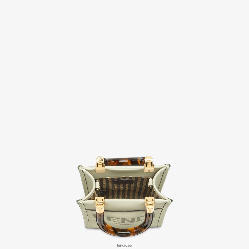 حقيبة تسوق صغيرة من نوع Sunshine مصنوعة من الجلد باللون الأخضر الفاتح ومزودة بختم فندي روما الساخن ومقابض زجاجية صلبة بتأثير صدفة السلحفاة.