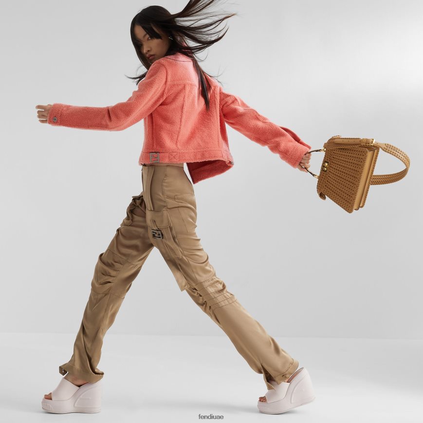 حزام كتف طويل قابل للتعديل بمشبك مزدوج، للاستخدام مع أي حقيبة ذات خطافات. مصنوع من الجلد البيج. مزين بتفاصيل وحلقات مترابطة مع طباعة فندي روما. أدوات معدنية مطلية بالذهب.