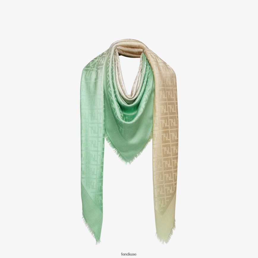 شال من الحرير والصوف أخضر Fendi نحيف مُكَمِّلات TNL80L204