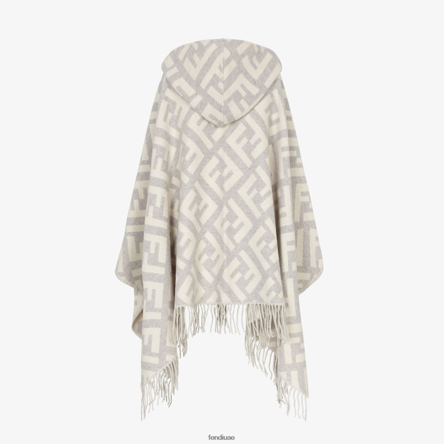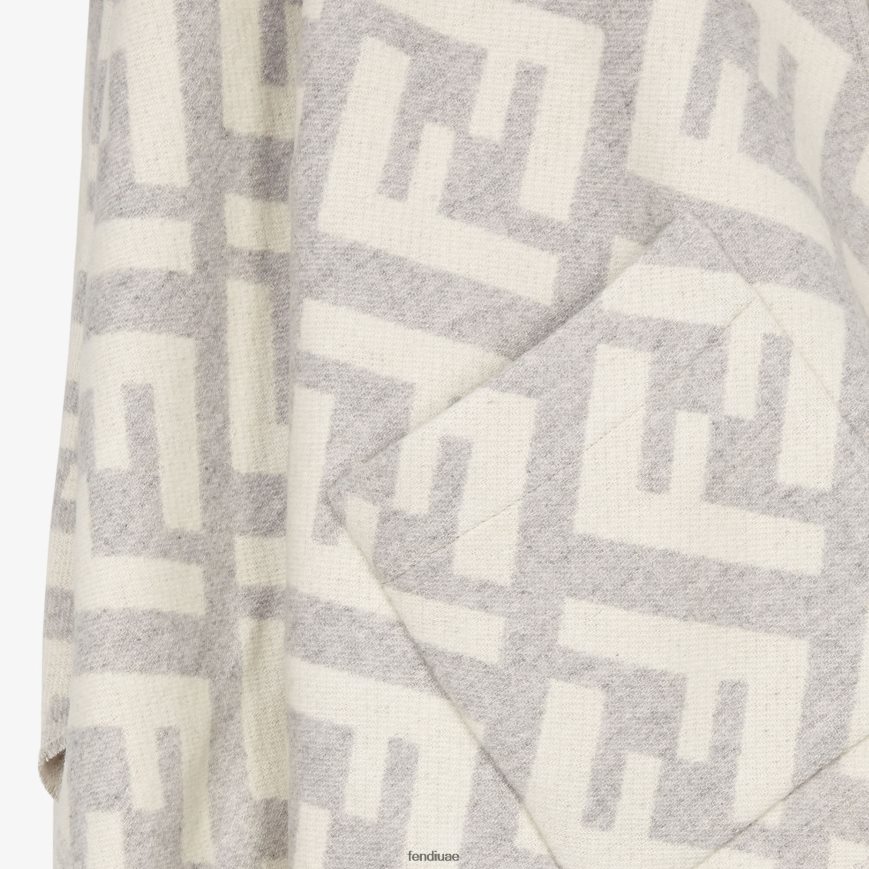 معطف بغطاء رأس وجيوب ماكسي في الأمام. مصنوع من الكشمير الخالص مع تصميم ماكرو ff باللونين الرمادي والأبيض. لمسة نهائية بأهداب عند الحاشية.