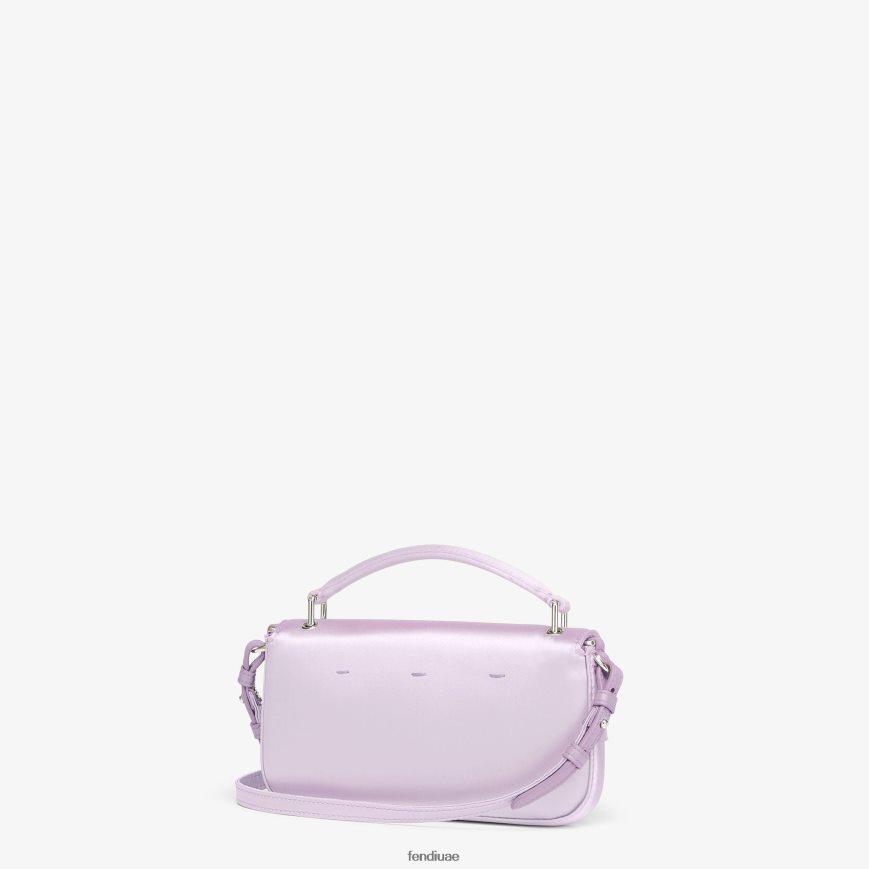 حقيبة هاتف باجيت للهاتف الذكي مع غطاء أمامي وزر مغناطيسي للإغلاق. مقبض صغير وحزام كتف قابل للفصل. مصنوع من الساتان الحريري الليلكي. أدوات معدنية مطلية بالبلاديوم.