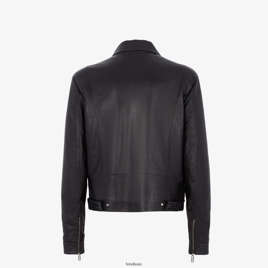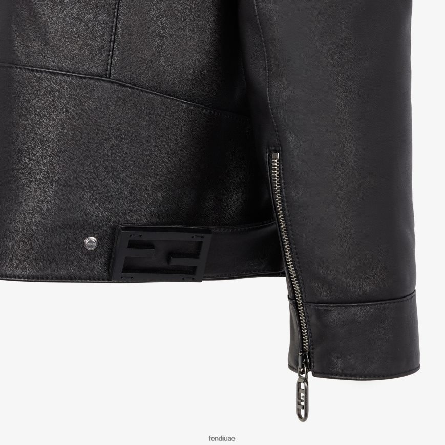 سترة راكب الدراجة النارية من جلد النابا أسود Fendi رجال ثياب TNL80L2097