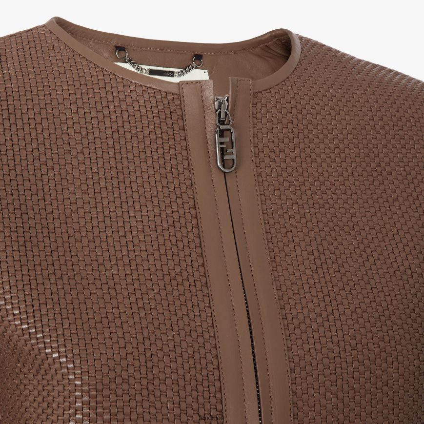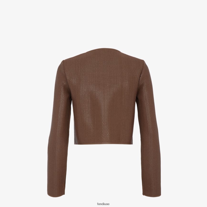 سترة جلدية منسوجة بني Fendi نحيف ثياب TNL80L1140