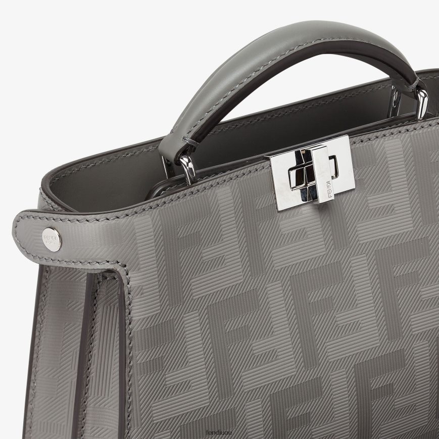 حقيبة بيكابو إيزيو إكس كروس الشهيرة مصنوعة من جلد فندي باللون الرمادي الفاتح مع زخرفة مخططة على شكل حرف ff.