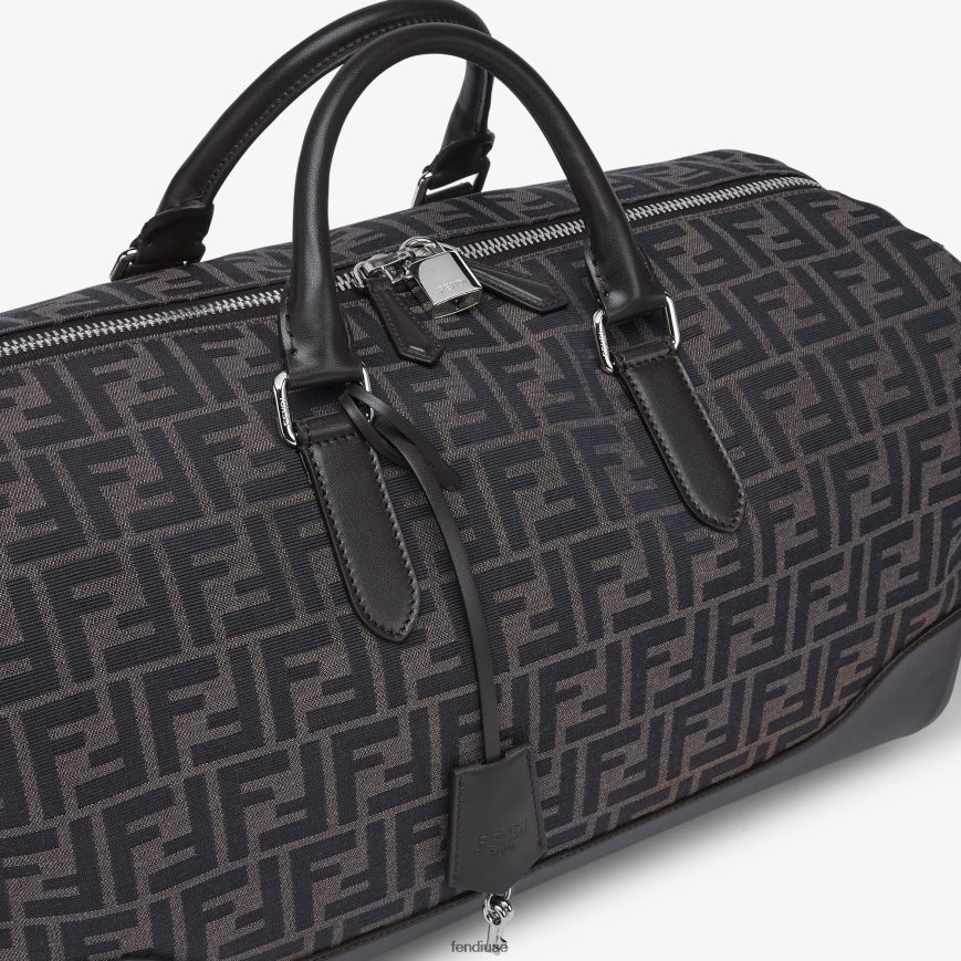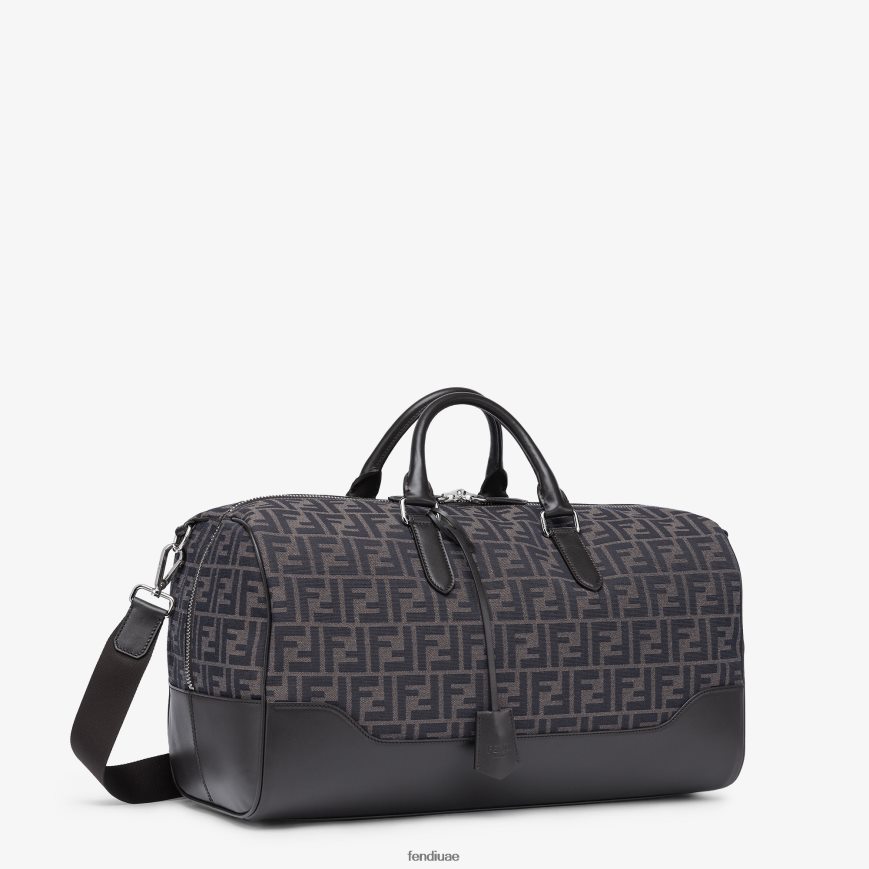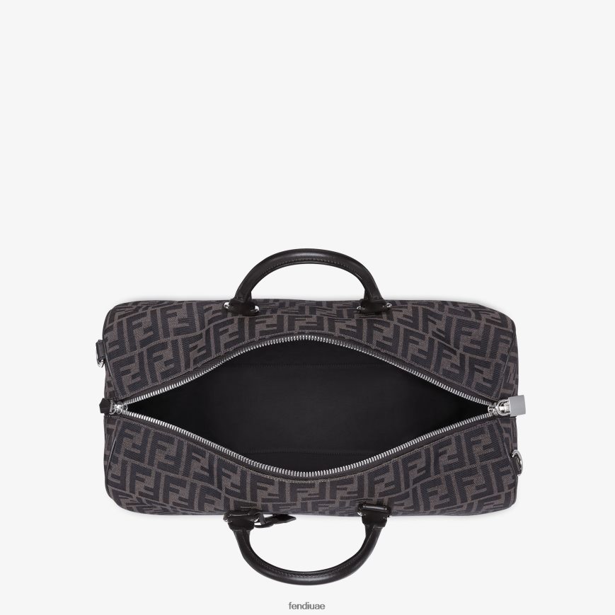 حقيبة كبيرة مصنوعة من قماش الجاكار مع شعار ff باللونين الرمادي والأسود. إغلاق بسحاب مع منزلق مزدوج وقفل وحقيبة مفاتيح. القاعدة والتفاصيل من الجلد الأسود.
