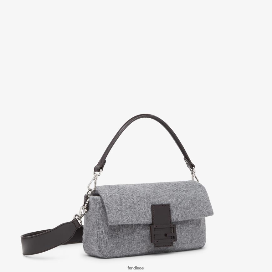 حقيبة الباغيت رقم 2 مستوحاة من حقيبة الباغيت "الكشمير" من مجموعة خريف وشتاء 1999 -2000 جمع. الحقيبة مصنوعة من الكشمير الناعم باللون الرمادي الداكن، المادة المثالية للارتداء، ومزودة بجلد بني.