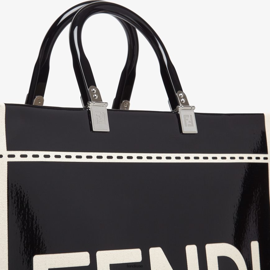 حقيبة تسوق من القماش والجلد اللامع أسود Fendi نحيف مُكَمِّلات TNL80L740