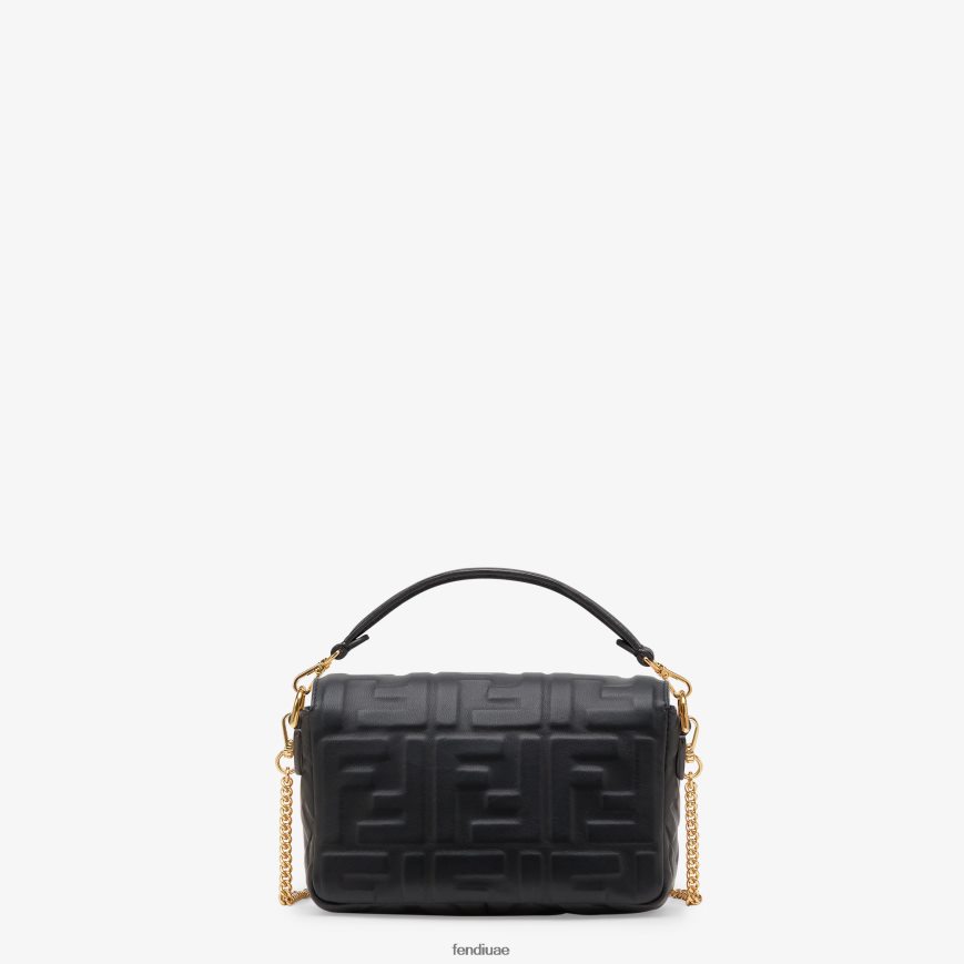 حقيبة باغيت صغيرة أيقونية مصنوعة من جلد نابا الناعم باللون الأسود مع شعار FF ثلاثي الأبعاد. مزينة بإبزيم على شكل حرف ff.