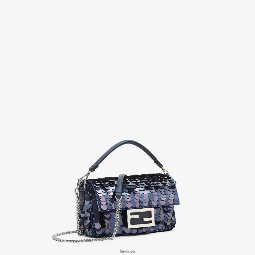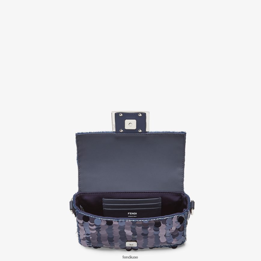 حقيبة باجيت صغيرة أيقونية مطرزة بالكامل بالترتر بأحجام مختلفة بدرجتين من اللون الأزرق لإضفاء تأثير مخطط. مزينة بمشبك على شكل حرف ff.