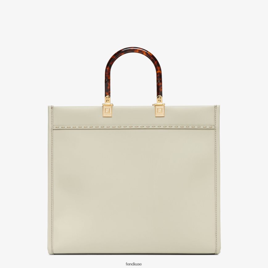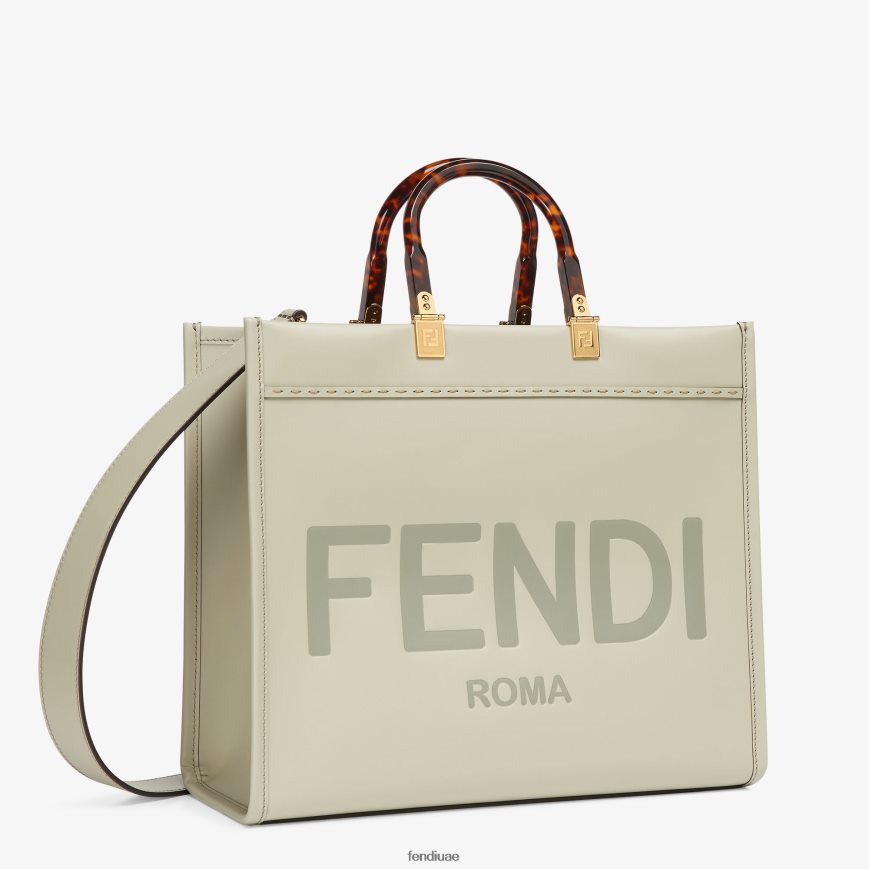 حقيبة تسوق متوسطة الحجم مصنوعة من الجلد باللون الأخضر الفاتح مع "فندي روما" مختومة بالحرارة ومقابض زجاجية صلبة بتأثير صدف السلحفاة.