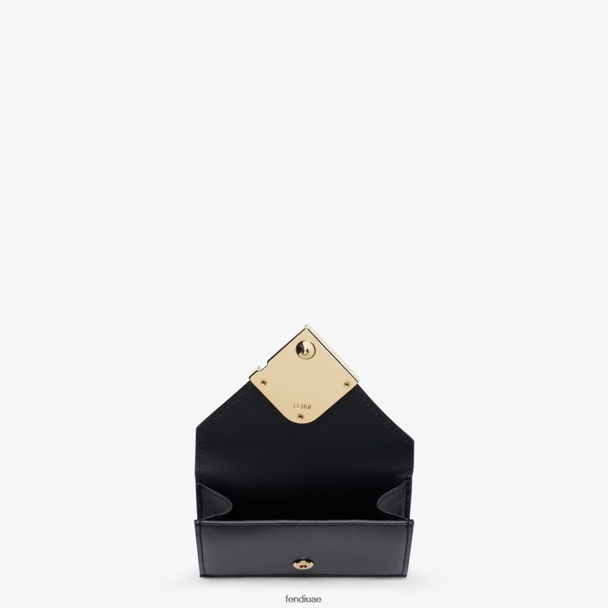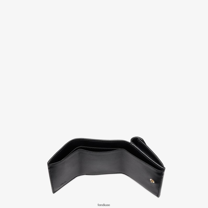 محفظة ff Diamonds جلدية ثلاثية الطي أسود Fendi نحيف مُكَمِّلات TNL80L1470