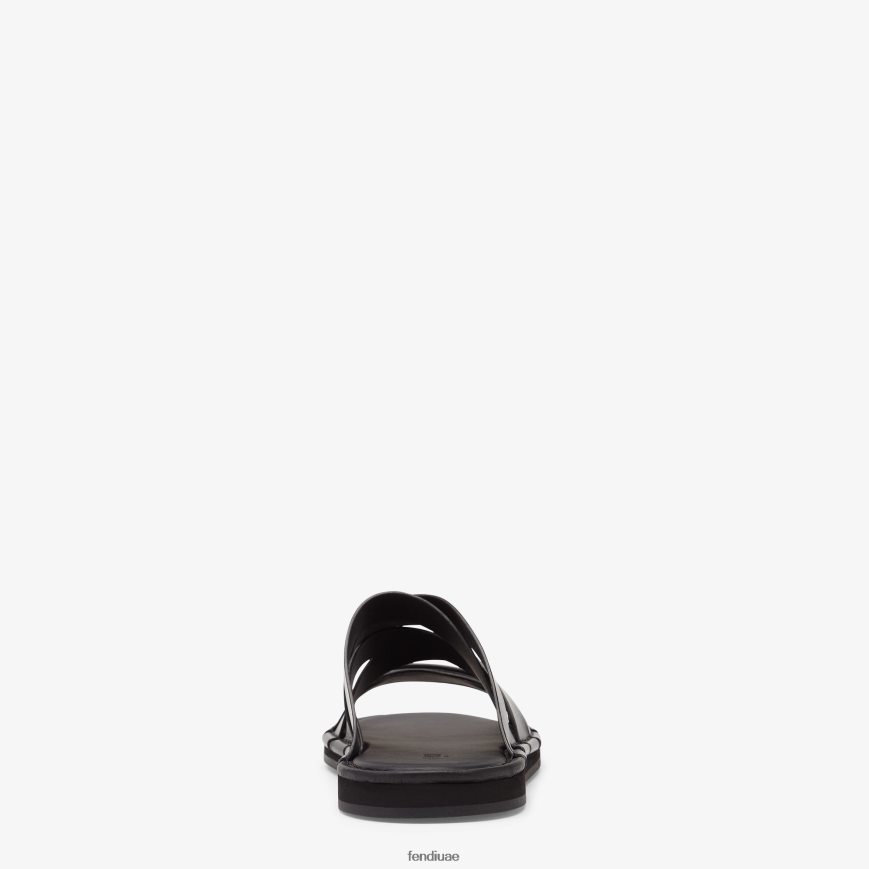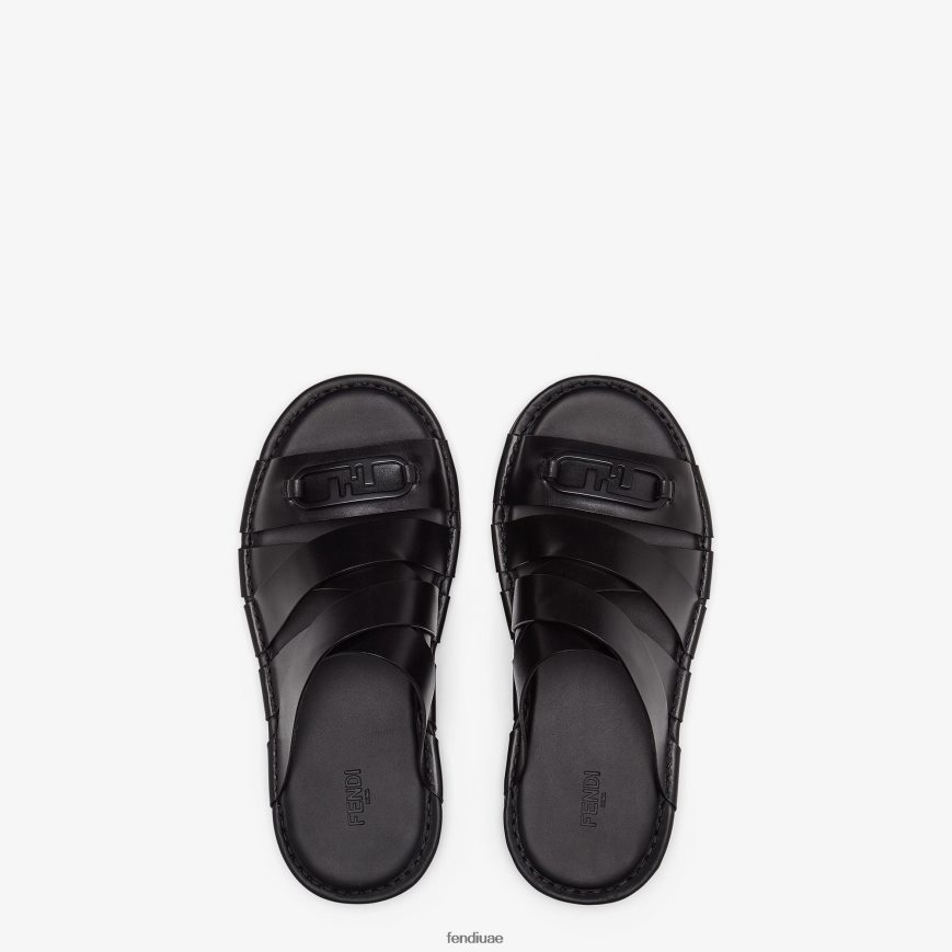 شرائح جلدية سوداء مع أشرطة متقاطعة. مزين بشعار فندي أولوك من المعدن المطلي باللون الأسود.