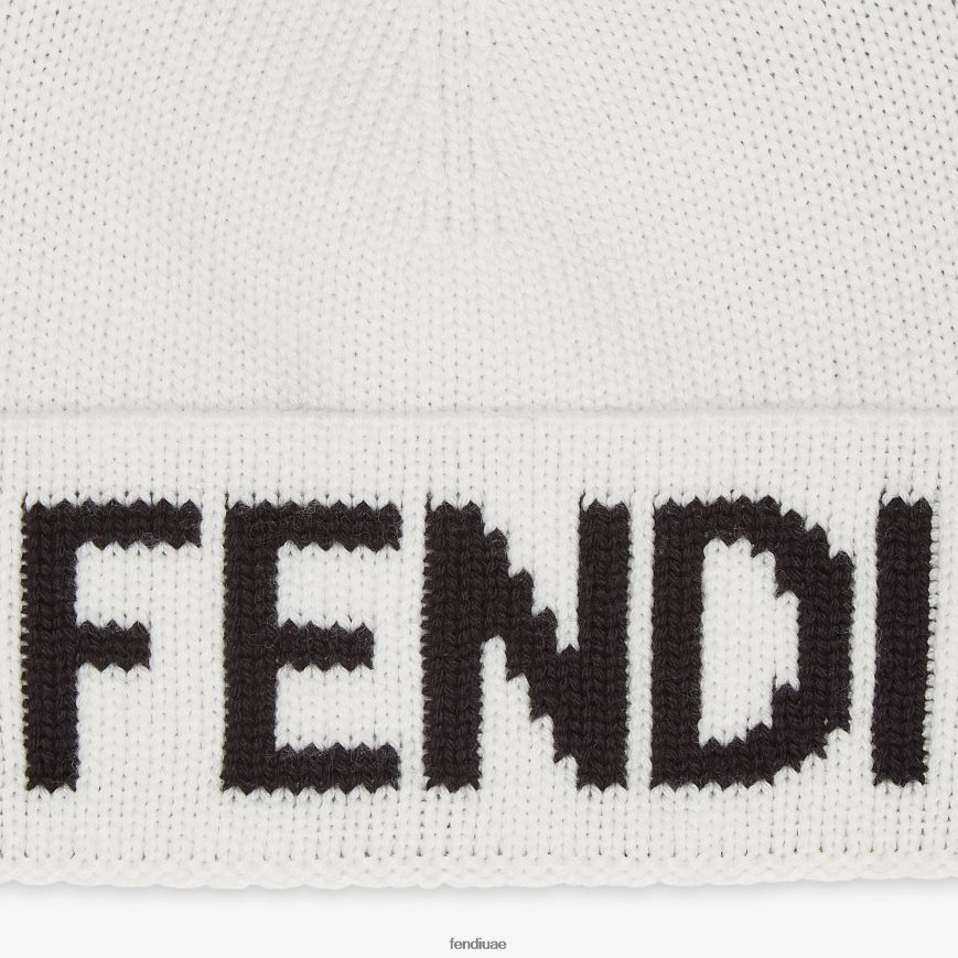قبعة مصنوعة من الصوف الأبيض. مع لمسة نهائية من حروف جاكار فندي باللون الأسود.