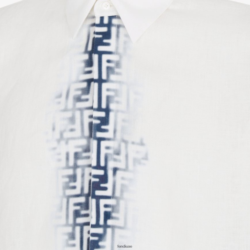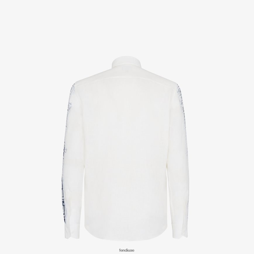 قميص الكتان المبيض أزرق Fendi رجال ثياب TNL80L2038