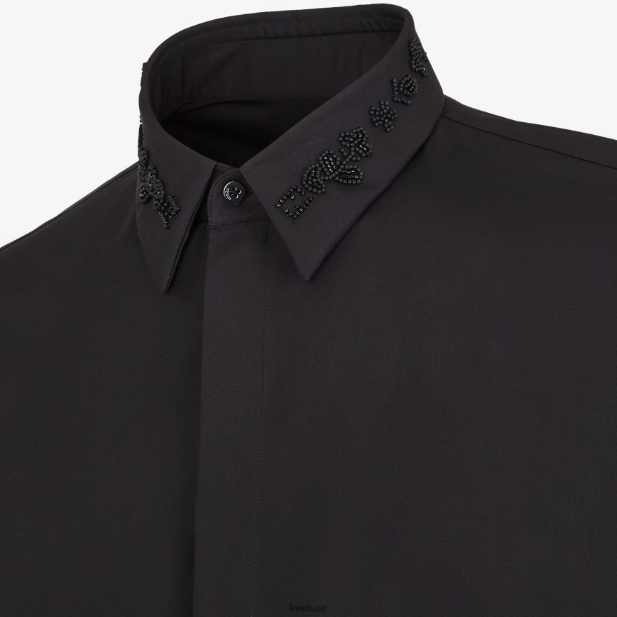 قميص قطني أسود Fendi رجال ثياب TNL80L2083