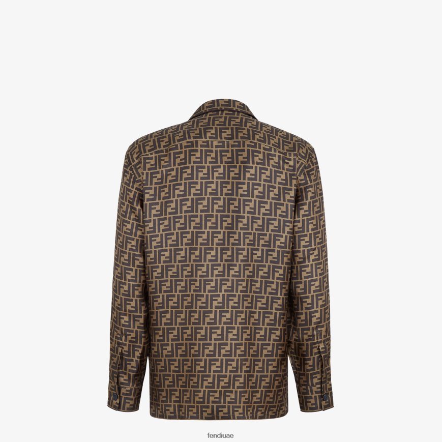 قميص من الحرير بني Fendi رجال ثياب TNL80L2134