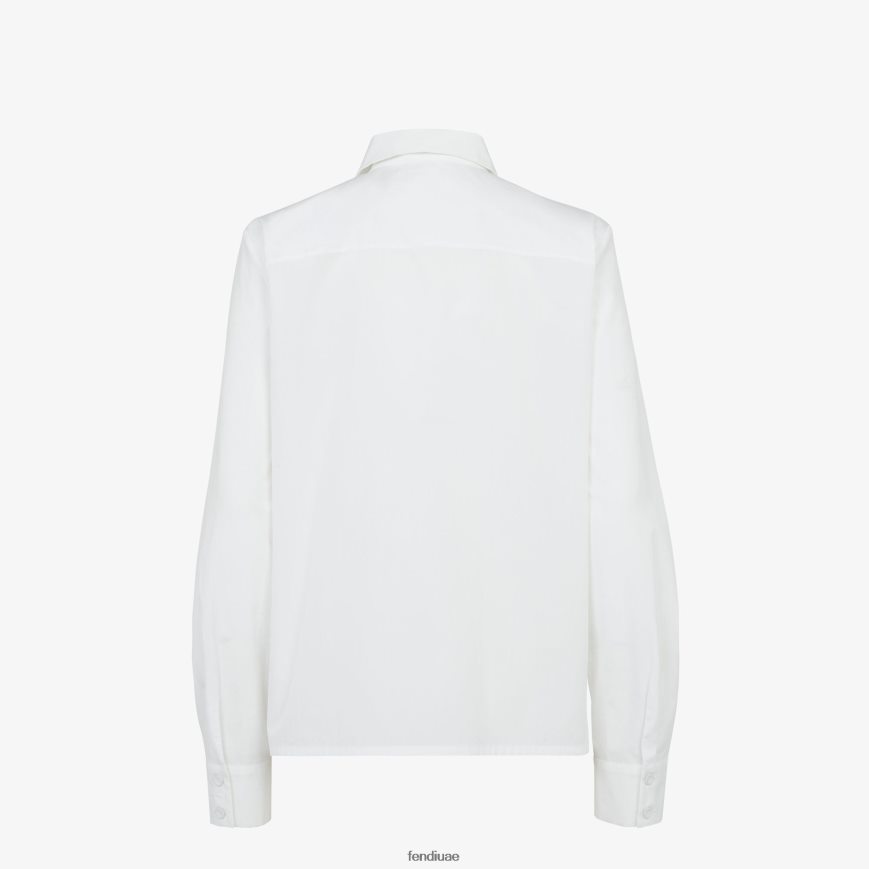 قميص بقصة مستقيمة وياقة مدببة وأكمام طويلة. مصنوعة من قطن البوبلين الأبيض. مزين بجيب رقعة بسحاب على الصدر وشعار فندي روما مطبوع باللون الأسود.