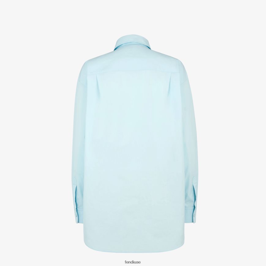 قميص قطني أزرق فاتح Fendi نحيف ثياب TNL80L966