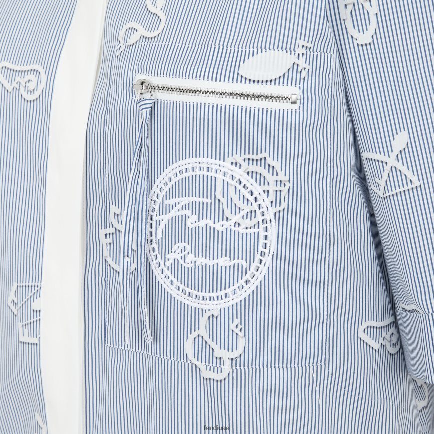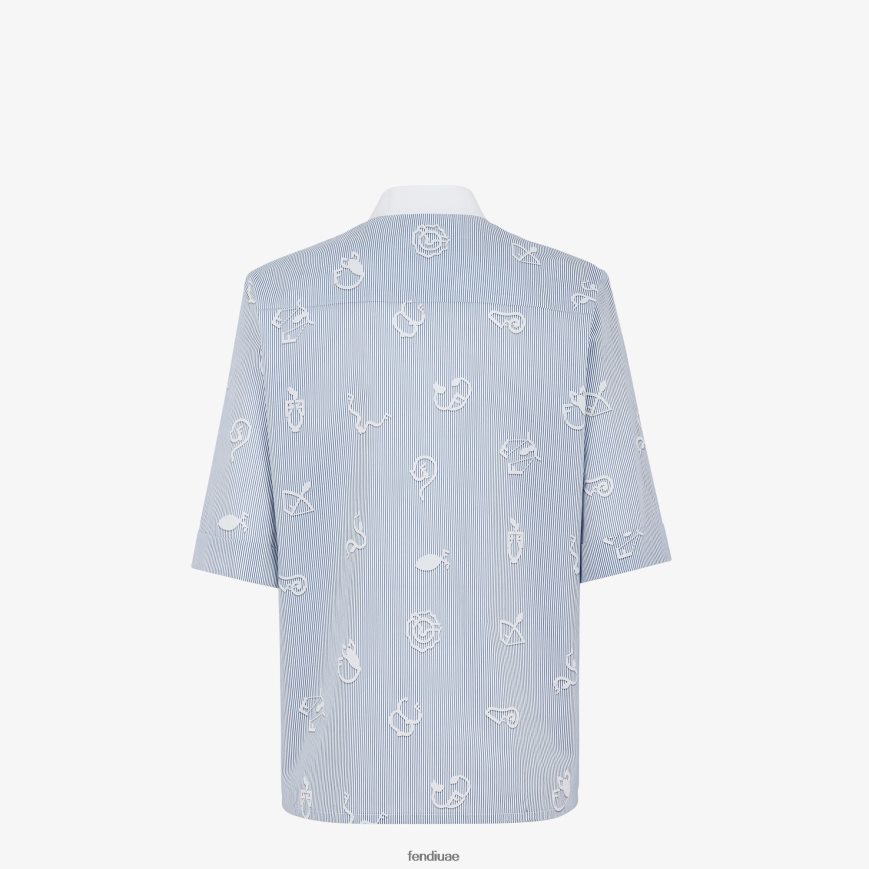 قميص بياقة ماندارين وأكمام قصيرة. مصنوع من القطن الأزرق. جيب على الصدر مع حروف فندي روما.