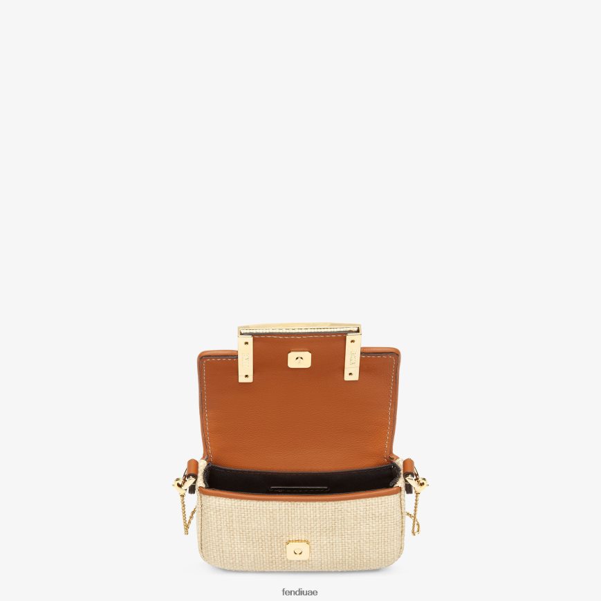 نسخة نانو من حقيبة الرغيف الفرنسي الشهيرة، مزودة بغطاء وقفل مغناطيسي. يسمح المشبك بربطه مثل التعويذة بالحقائب أو الأحزمة الأكبر حجمًا. ويمكن أيضًا ارتداؤها بشكل متقاطع بفضل حزام الكتف الرفيع القابل للتعديل. حامل بطاقة الائتمان جيب مسطح بالداخل. مصنوعة من الرافية الطبيعية مع زخارف مطرزة. تفاصيل من الجلد البني. أدوات معدنية مطلية بالذهب.