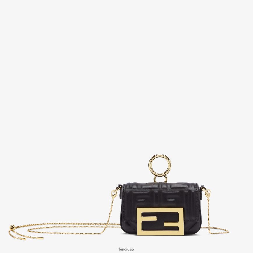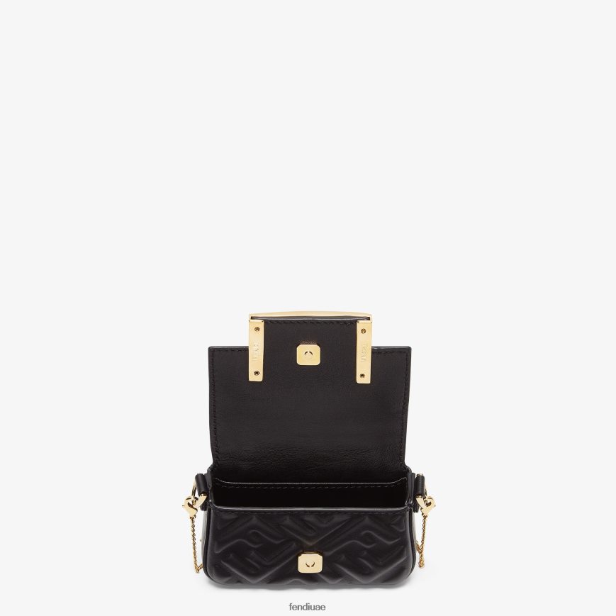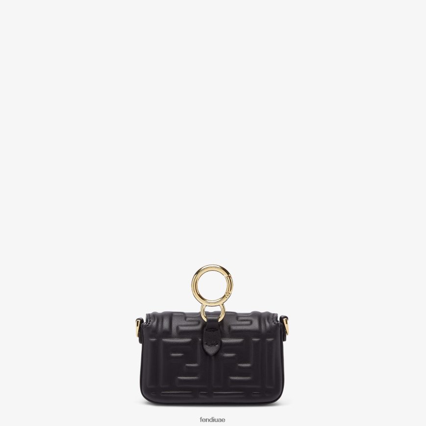 نسخة نانو من حقيبة الرغيف الفرنسي الشهيرة، مع غطاء وقفل مغناطيسي. يسمح المشبك بربطه بأكياس أو أحزمة أكبر. ويمكن أيضًا ارتداؤها بشكل متقاطع بفضل حزام الكتف الرفيع. بطانة مع جيب مسطح. مصنوع من جلد نابا باللون الأسود. انتهى بزخارف ff منقوشة. أدوات معدنية مطلية بالذهب.
