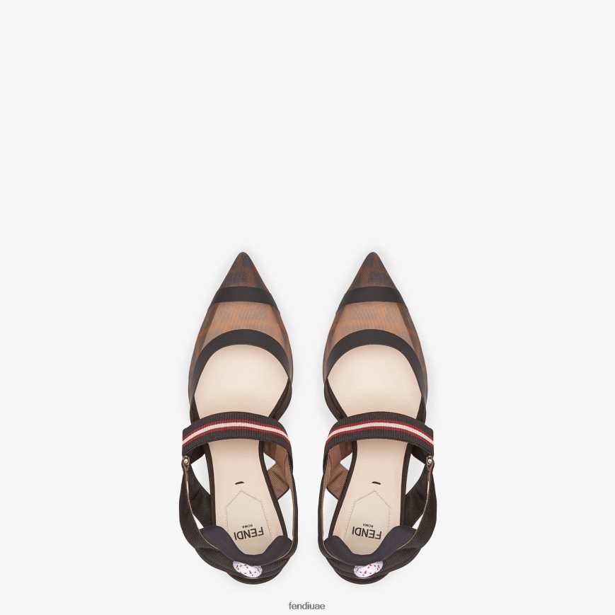أحذية خفيفة متوسطة الكعب شبكية متعددة التقنيات بني Fendi نحيف أحذية TNL80L1394