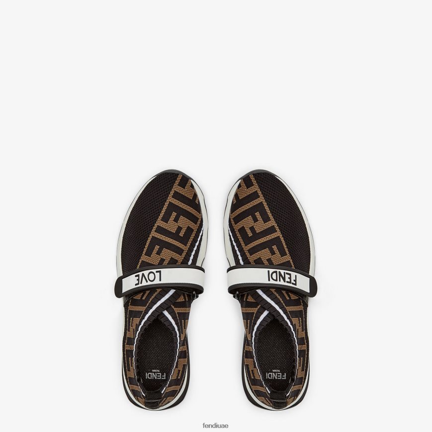 حذاء روكوكو الرياضي مع نعل حذاء جري بلونين. النسيج المثقوب الصغير يعني أنه يتمتع بمرونة وخفيفة الوزن. مصنوعة من خيوط مطاطية سوداء. مزين ببطانة ff. إغلاق بشريط فيلكرو مع علامة مطاطية سوداء وحروف فندي.