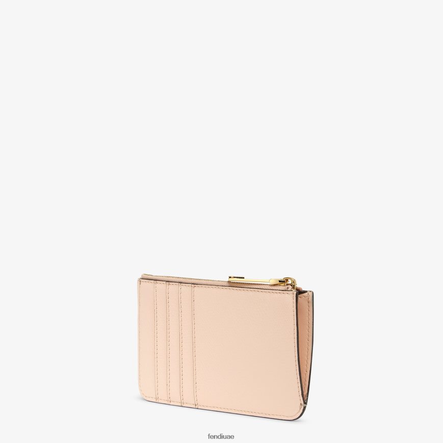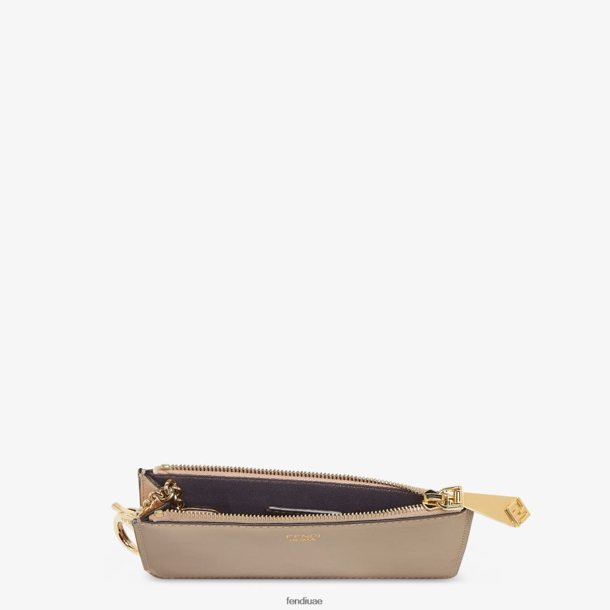 حقيبة مفاتيح ff Diamonds مع جانب مقوى. يتميز الجزء الخلفي بأربع فتحات للبطاقات. يوجد بالداخل حزام قابل للسحب مع مشبك. اغلاق سحاب البنطلون. مصنوع من جلد الحمامة باللون الرمادي مع جلد وردي فاتح. أدوات معدنية مطلية بالذهب.
