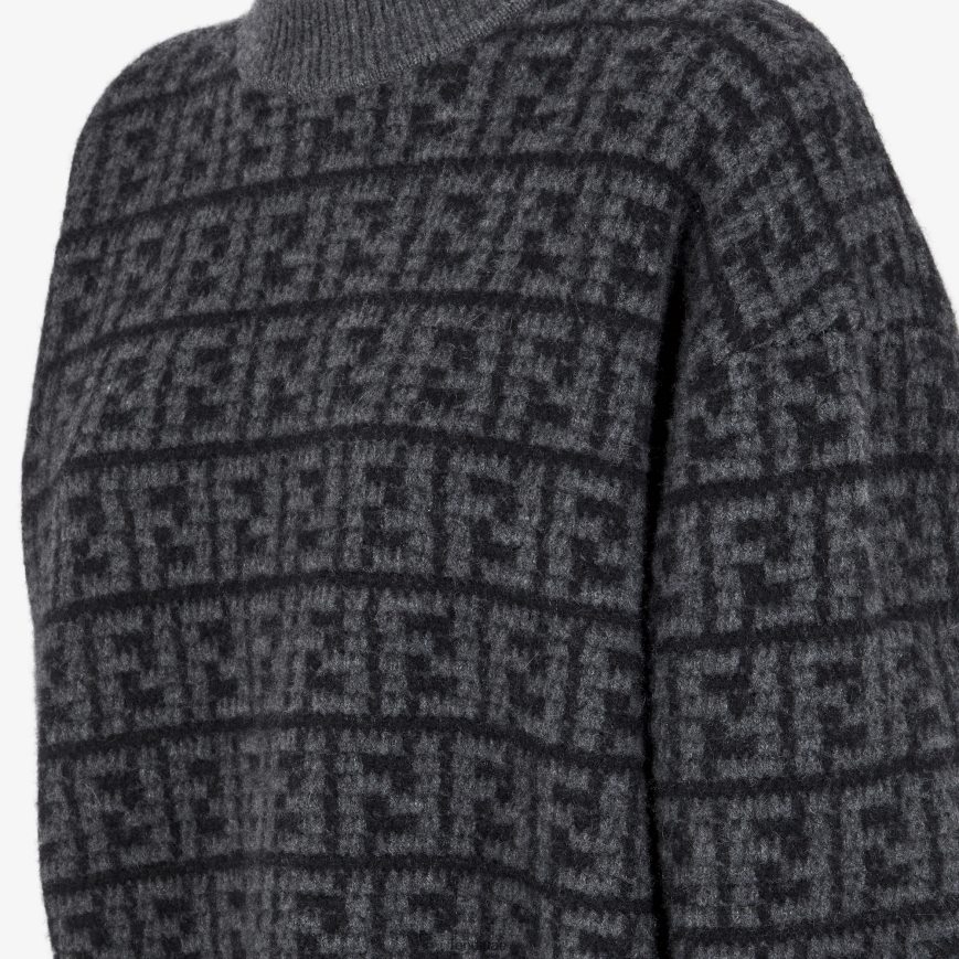 ff سترة كشمير كروشيه أسود Fendi نحيف ثياب TNL80L1218