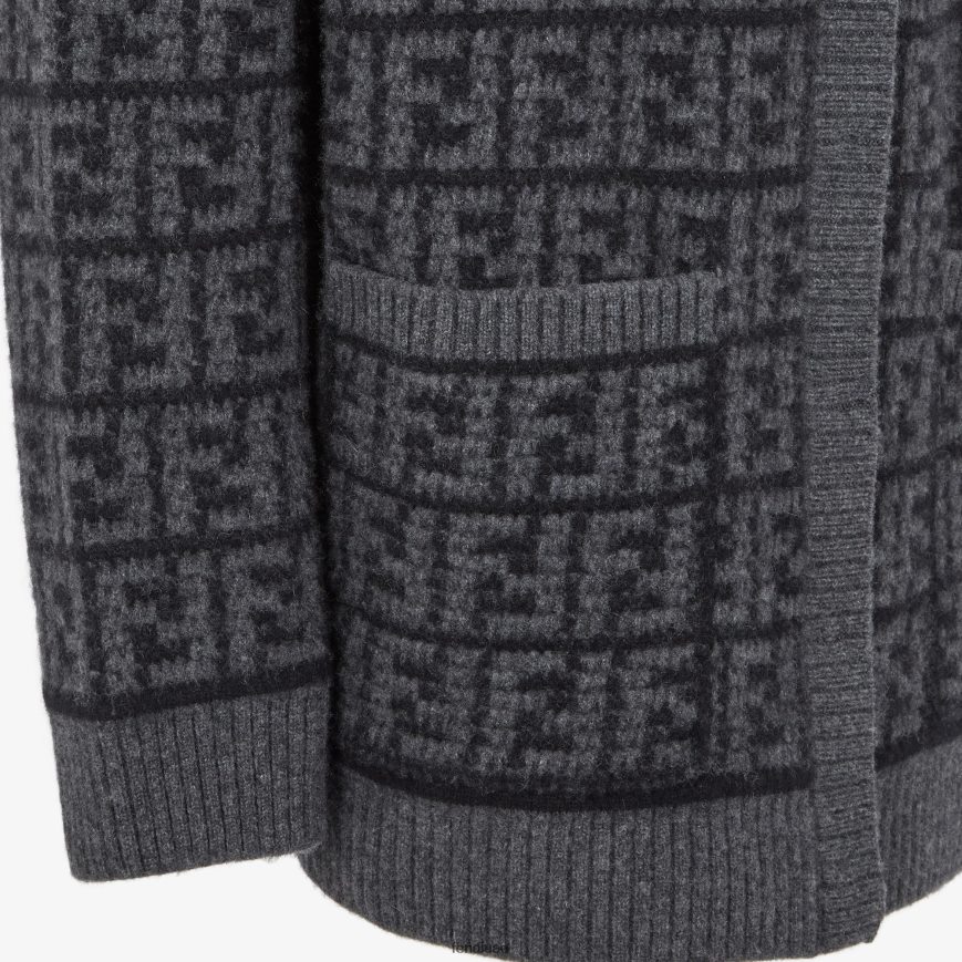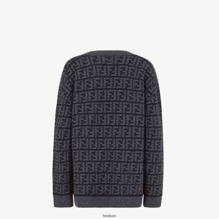ff سترة من الكشمير الكروشيه أسود Fendi نحيف ثياب TNL80L1216